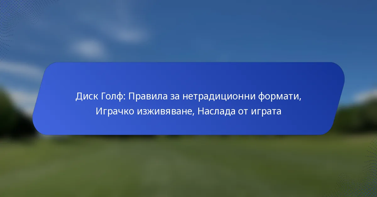 Нетрдиционните формати за дисков голф въвеждат уникални правила и вариации, които подобряват опита и удоволствието на играчите. Тези формати често се различават значително от стандартната игра, предлагайки нови предизвикателства и разнообразни методи за оценка.