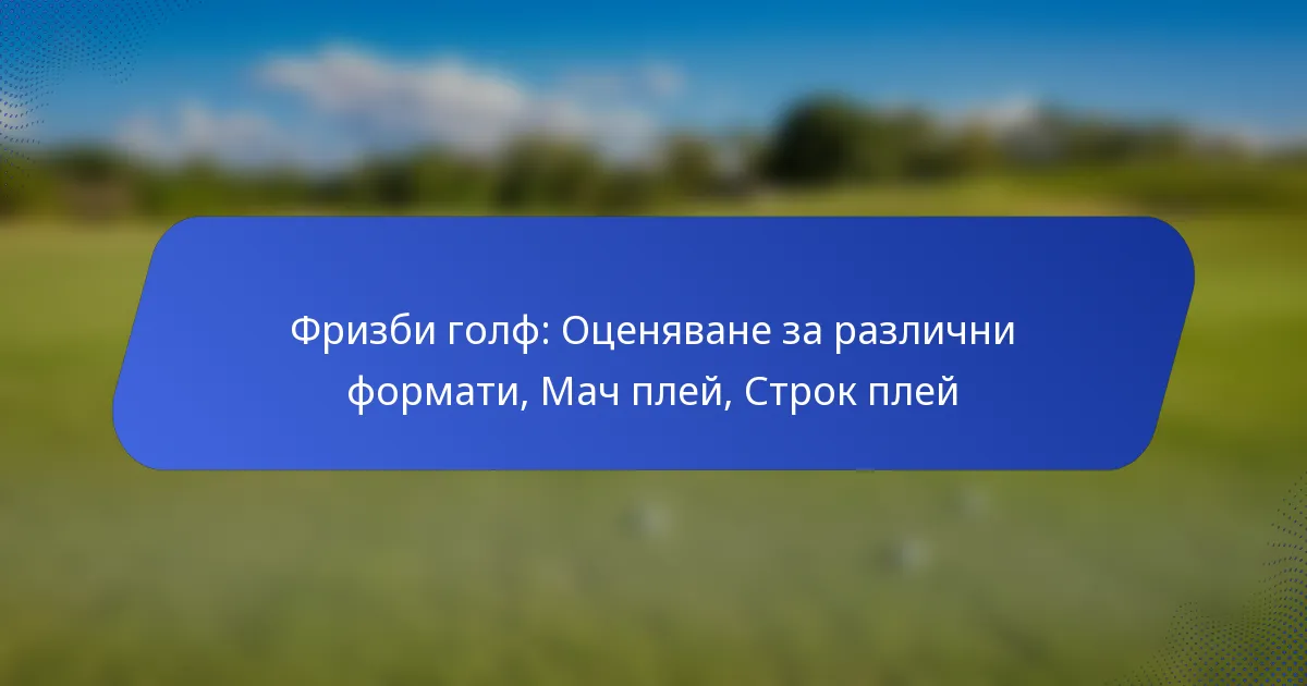 Мач плей и стролк плей са два основни формата в Фрисби голф, всеки с различни методи за оценка и стратегии. В мач плей играчите се състезават един срещу друг, фокусирайки се върху спечелването на индивидуални дупки, докато стролк плей включва натрупване на най-ниския общ брой хвърляния през цялото трасе.